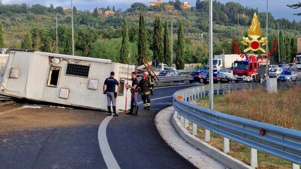 BAGNO A RIPOLI (FIRENZE) – I Vigili del fuoco del comando di Firenze sono intervenuti stamattina, 22 settembre 2023, alle ore 7:40 nel comune di Bagno a Ripoli sul tratto autostradale A1, sulla corsia di decelerazione del casello di Firenze Sud, per un incidente stradale che ha visto coinvolto un camper che si è ribaltato.
