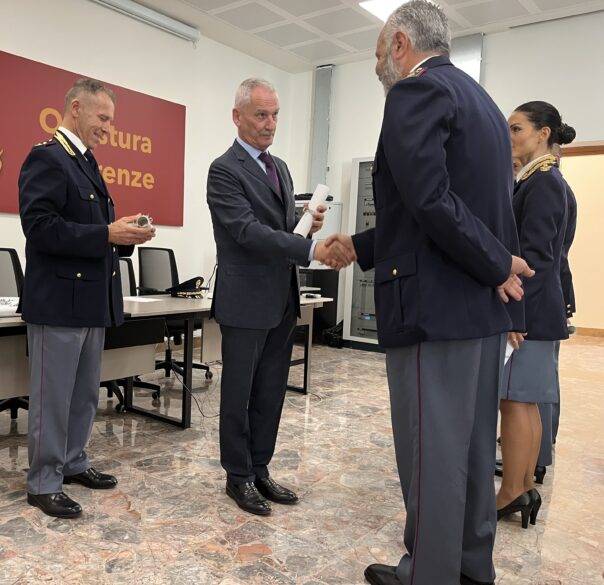 In coda alle cerimonie mattutine, nel pomeriggio, il questore Auriemma, all’interno della caserma “Fausto Dionisi” in lungarno della Zecca Vecchia, ha proceduto alla consegna sia di vari riconoscimenti a donne e uomini della Questura e delle varie specialità, distintisi in operazioni di polizia giudiziaria e di soccorso pubblico, sia di alcuni attestati di congedo al personale andato in pensione dopo decine d’anni di duro lavoro al servizio della collettività.