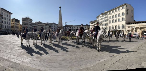 FIRENZE – La fanfara a cavallo della Polizia di Stato ospite di Parte Guelfa oggi, 1 ottobre 2023, a Firenze. Si è conclusa nella tarda mattinata in Piazza di Santa Maria Novella l’esibizione della fanfara a cavallo della Polizia di Stato che guidata dal maestro Silverio Mariani e accompagnata dal primo dirigente Leopoldo Testa è arrivata da Roma per onorare l’invito giuntole dall’ antica Arci confraternita di parte guelfa.