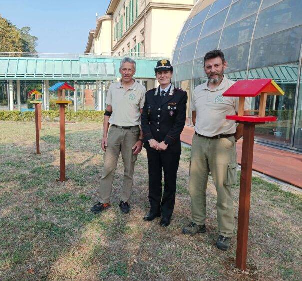 FIRENZE – All’interno del parco dell’ospedale pediatrico Meyer di Firenze sono state posizionate 5 coloratissime mangiatoie di legno, pronte per ospitare gli uccellini che popolano numerosi quell’area. Queste casette, messe di fronte alla Hall Serra dell’ospedale, sono tornate a nuova vita dopo un accurato intervento di ristrutturazione condotto dai falegnami del Reparto Carabinieri Biodiversità Pistoia.