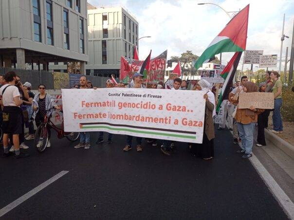 FIRENZE – Erano oltre 400 gli studenti a Firenze nel pomeriggio di oggi, 14 ottobre 2023, sui viali della città a sfilare in corteo, partiti dalla Fortezza da Basso per il diritto allo studio. L’iniziativa ha raccolto però anche istanze per la Palestina. Tra gli striscioni le scritte “Con la Palestina che resiste” e “A fianco della Resistenza palestinese”. Tra gli slogan ‘Palestina libera , Palestina rossa’. Uno striscione di apertura rivendicava il “diritto allo studio”, altri in coda sono stati mostrati dal Fronte di liberazione del popolo palestinese. Sventolate tra le bandiere, quella della Palestina, Carc, Pci, Fgci. Slogan contro la repressione, l’apertura di un comando Nato a Firenze e sulle occupazioni.