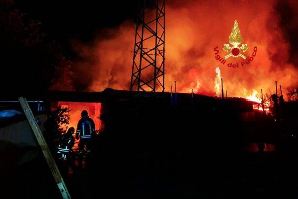 Incendio a Scandicci: a fuoco una baracca di legna. Paura dei vicini