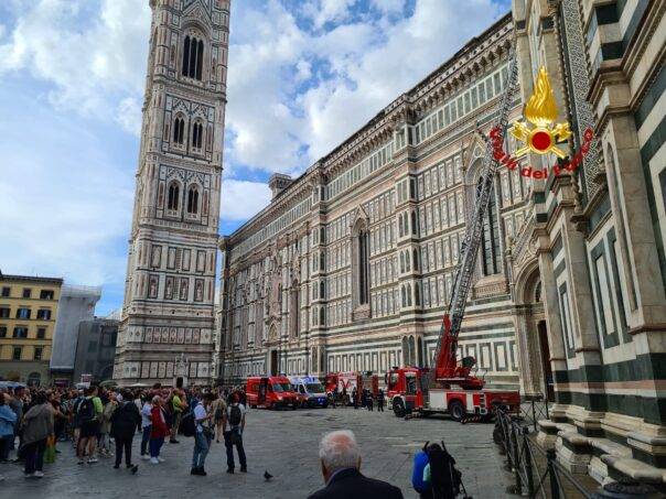 FIRENZE – I Vigili del fuoco del comando di Firenze, sede centrale, sono intervenuti alle ore 15.00 a Firenze in Piazza del Duomo sulla Cupola del Brunelleschi per soccorrere un uomo (e non una donna come comunicato in un primo momento dai soccorritori ndr) colto da malore.