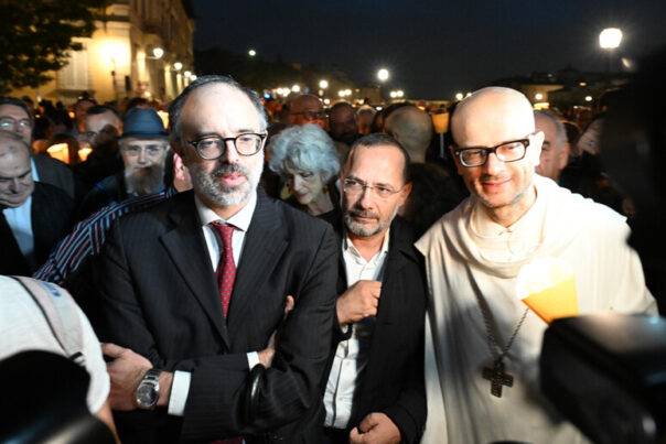 Pace in Medio Oriente: 5mila alla fiaccolata di Firenze. Insieme padre Bernardo, il rabbino e l’imam