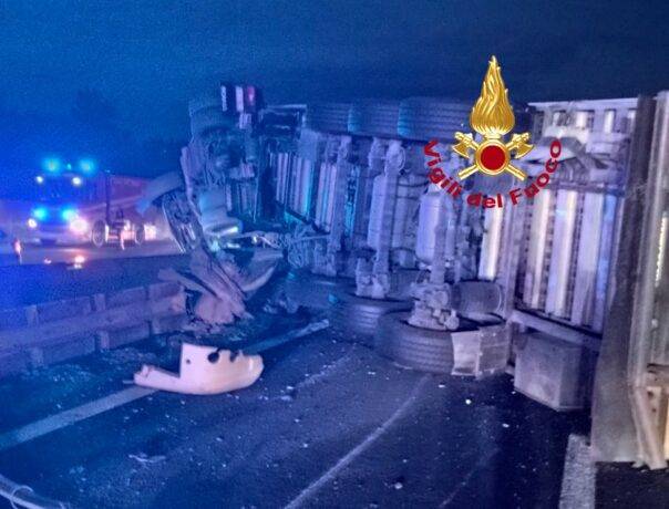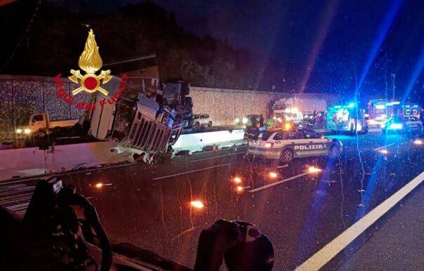 Autostrada A1: Tir si ribalta, tratto chiuso fra Firenze Sud e Impruneta. Tre feriti