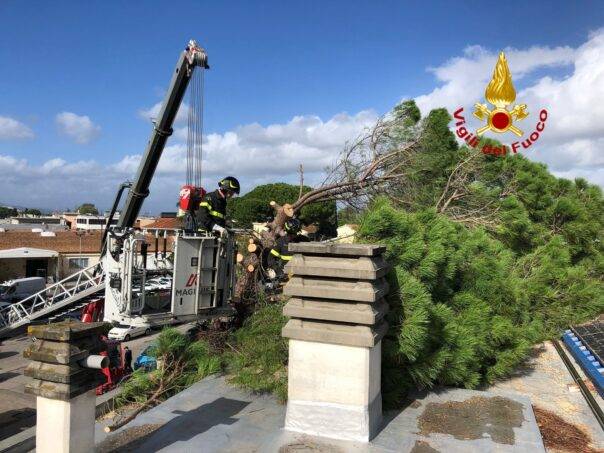 Firenze, maltempo: grosso pino cade sul tetto di una casa a Scandicci