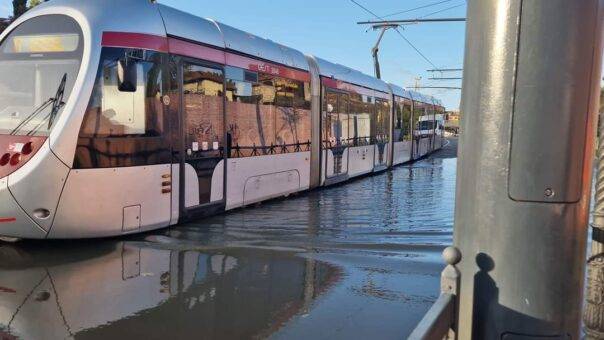 Intorno alle 11, le operazioni per far defluire l’acqua dalla sede tramviaria sono state completate e il servizio ha potuto riprendere.