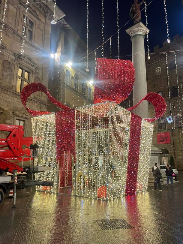 piazza Antinori, due grandi installazioni luminose a forma di pacco regalo, aperte e percorribili,