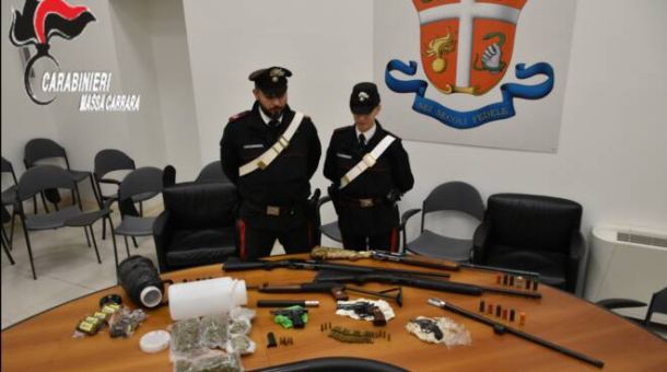 MASSA (MASSA CARRARA) – I carabinieri di Massa hanno sequestrato quattordici chili di droga, tre fucili calibro 12, una carabina calibro 22, una pistola semiautomatica calibro 7,65 e due revolver tra cui uno calibro 357, con relativo munizionamento. Due le persone arrestate, entrambe della zona. I militari hanno dato esecuzione a un’ordinanza di custodia cautelare emessa dal gip del tribunale di Massa nei confronti di due persone, di cui uno sottoposto alla custodia cautelare in carcere e l’altro agli arresti domiciliari. Eseguite sette perquisizioni domiciliari nei confronti di altrettanti soggetti, coinvolti a vario titolo nell’attività di spaccio che ha portato all’arresto dei due principali indagati, spiegano gli investigatori in una nota.