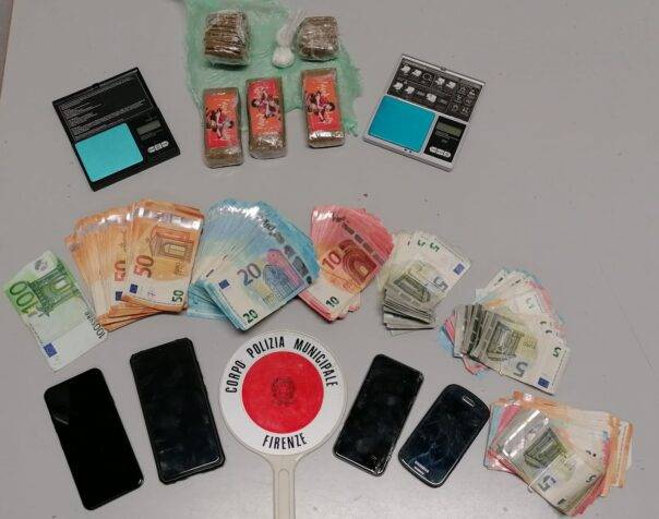 La perquisizione è continuata in casa dove il potente fiuto di Sirio, “ha scovato, nascosti in uno zaino, alcuni panetti di sostanza stupefacente, complessivamente oltre 300 grammi di hashish e circa 6 grammi di cocaina. Trovati anche quattro cellulari, bilancine di precisione, sostanze da taglio e 8.980 euro probabile provento dell’attività di spaccio”. Droga, denaro e l’attrezzatura per il confezionamento delle dosi sono stati sequestrati. La squadra antidegrado ha fermato anche un minore alla fermata della tramvia Fallaci intento a spacciare. Per lui è scattato l’accompagnamento presso una struttura di accoglienza.
