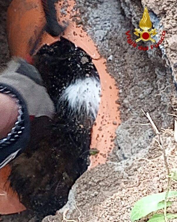 La tubazione interessata, di circa 50 metri, è stata forata in più punti per inserire la videocamera da ispezione al fine di individuare il tratto dove si trovava l’animale per poi liberarlo e affidarlo alla proprietaria. Sul posto presente anche un operaio del comune che ha collaborato con la squadra dei Vigili del fuoco.