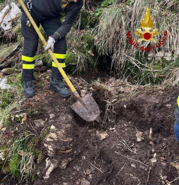 Dapprima con l’ausilio di apposite sonde e successivamente con l’aiuto di un badile, i Vigili del fuoco hanno individuato il cane e gli hanno aperto un varco verso l’esterno, consentendo così al proprietario di potersene prendere cura.