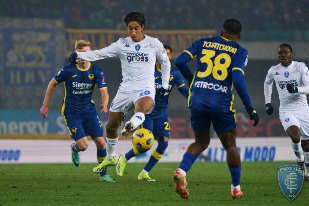 Gli uomini di Andreazzoli vanno nuovamente vicini all’1-1 al 34′, quando Grassi calcia a lato di poco una punizione dal limite dell’area. Dopo una prima parte di gara vivace, nel finale di tempo il ritmo rallenta e le due squadre vanno al riposo sull’1-0. In avvio di ripresa la nebbia si infittisce e gli scaligeri si rendono pericolosi dopo appena quattro minuti. Serdar entra in area, vince un paio di rimpalli e va al tiro con il mancino ma Caprile salva in angolo. Il portiere empolese deve però capitolare all’11’. Ngonge parte da destra, si sposta la palla sul sinistro e calcia trovando il 2-0 sul primo palo sfruttando anche una deviazione di Luperto che inganna il suo portiere.
