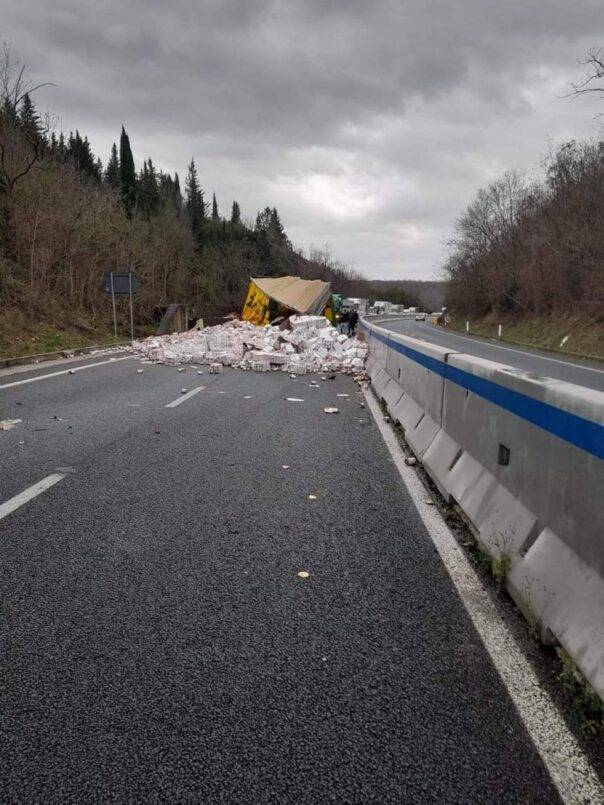 Autopalio: tir si ribalta e perde il carico a Barberino Val d’Elsa. Tratto chiuso, lunghe code