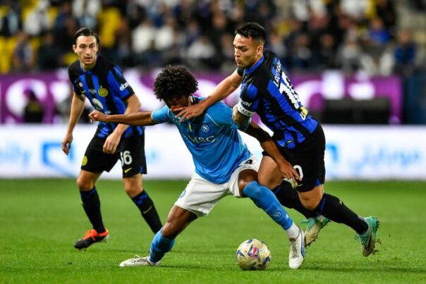 LAUTARO – La svolta del match, però, arriva subito dopo: Simeone, già ammonito per un fallo su Cahlanoglu, entra su Acerbi, l’arbitro Rapuano estrae il secondo giallo lasciando il Napoli in dieci e Mazzarri in preda all’ira. I tecnici provano a pescare dalla panchina, quello degli azzurri per difendersi, Inzaghi per la vittoria. A sfiorare il vantaggio è prima Thuram, su colpo di testa di Pavard, poi Mkhitaryan dal limite con un gran destro che però si perde alto. Quando i rigori sembrano l’ipotesi più probabile, però, ecco il guizzo di Lautaro Martinez che, su cross di Pavard, gira in rete il pallone che vale il trionfo in Supercoppa italiana.