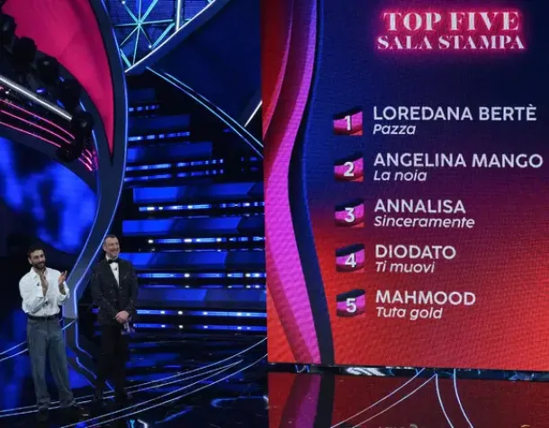 SANREMO – Cala il sipario sulla prima serata del Festival di Sanremo, nel segno di una co-conduzione perfetta di Marco Mengoni, che ha affiancato Amadeus. Loredana Bertè con “Pazza” chiude al primo posto nella classifica provvisoria. Nella serata con il voto riservato alla stampa, la rocker – che ha trascinato il pubblico dell’Ariston – guida la classifica, seguita al secondo posto da Angelina Mango, al terzo da Annalisa, al quarto da Diodato e al quinto Mahmood. Quindi la commozione della mamma di Giogiò Cutolo che ha coinvolto l’intero teatro dell’Ariston.