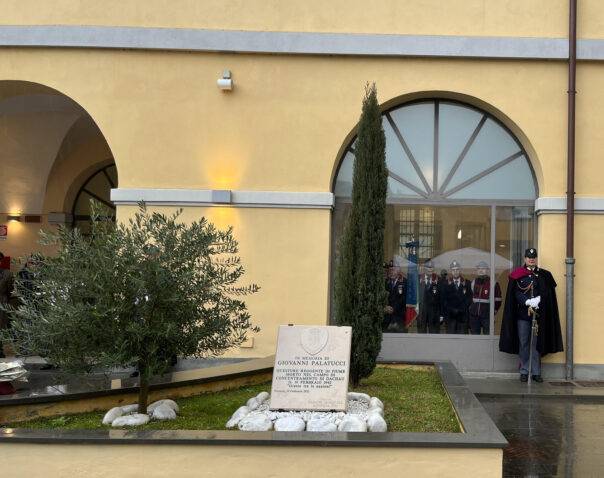 FIRENZE – Commemorazione, oggi 10 febbraio 2024, nella caserma Fausto Dionisi, nel lungarno della Zecca, del commissario Giovanni Palatucci, morto a Dachau il 10 febbraio 1945 a soli 35 anni. MOMC, Giusto tra le Nazioni, proclamato dalla Chiesa Servo di Dio nel 2004.