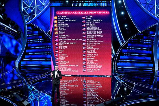 CLASSIFICA PROVVISORIA – Amadeus rivela la classifica generale provvisoria dopo quattro sere: primo posto per Geolier, secondo per Angelina Mango, terzo per Annalisa. Poi Ghali, Irama, Mahmood, Alessandra Amoroso, Loredana Bertè, Diodato, Alfa, Il Volo, Emma, Gazzelle, Fiorella Mannoia, The Kolors, Il Tre, Santi Francesi, Mr.Rain, Negramaro, Ricchi e Poveri, Dargen D’Amico, BigMama, Rose Villain, Clara, Maninni, Renga Nek, BNKR44, La Sad, Fred De Palma, Sangiovanni.