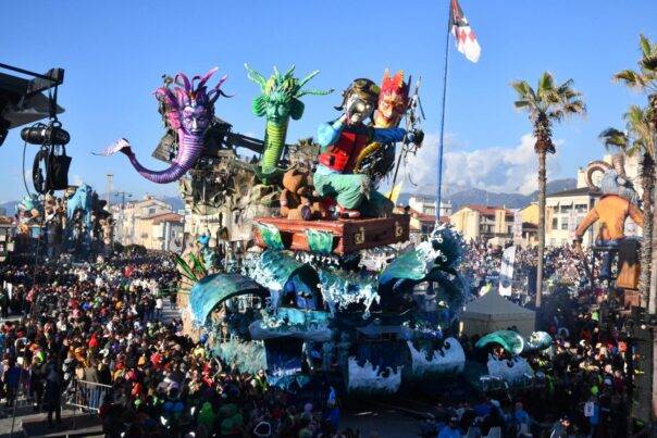 Carnevale di Viareggio 2024: gran festa sui viali a mare con Burlamacco d’oro alla Gialappa’s Band. Appello per liberare Narges Mohammadi (foto)
