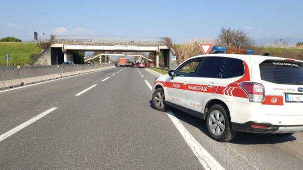 Pistoia: tir urta cavalcavia pedonale della tangenziale. Tratto chiuso
