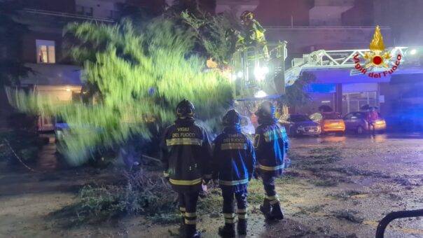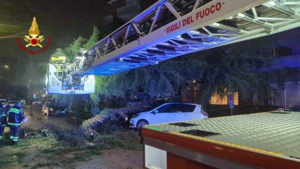 La squadra, con l’ausilio dell’autoscala e dell’autogru stanno provvedendo alla rimozione della pianta. Sul posto anche la Polizia Municipale.