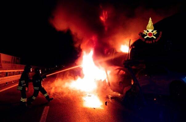 Non appena la situazione lo ha permesso sono state riaperte le corsie in direzione Nord. Ancora in corso l’intervento di raffreddamento e bonifica.