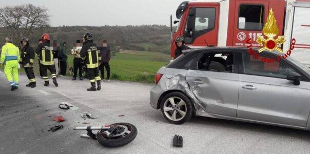 PIENZA (SIENA) – I Vigili del Fuoco del Comando di Siena sono intervenuti intorno alle ore 15.20 di oggi, 30 marzo 2024, per un incidente stradale sulla SP146 tra il km 103 e 105 nel comune di Pienza, che ha visto coinvolti una vettura ed una moto.