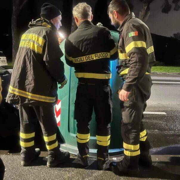 PRATO – Una storia commovente e di crudeltà sugli animali, fortunatamente a lieto fine, che ha scosso la città di Prato. I vigili del fuoco sono intervenuti la sera di Pasquetta, 1 aprile 2024, a Prato in viale Galilei, poco prima delle 21, su richiesta di una passante che aveva sentito dei miagolii provenire dall’interno di una campana del vetro.