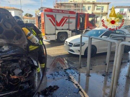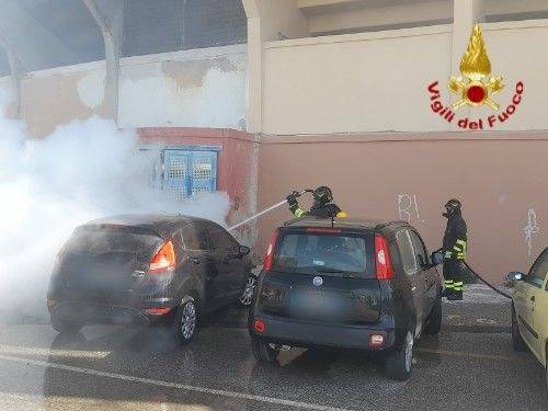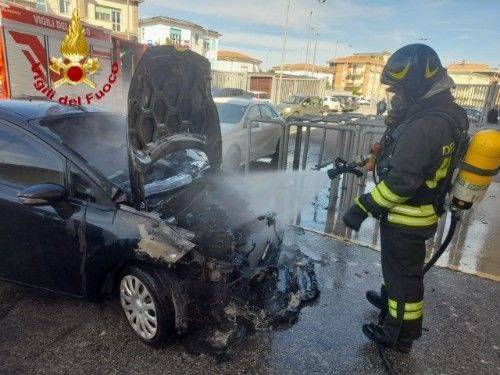 Il rapido intervento della squadra dei Vigili del fuoco ha scongiurato il propagarsi delle fiamme alle auto vicine.