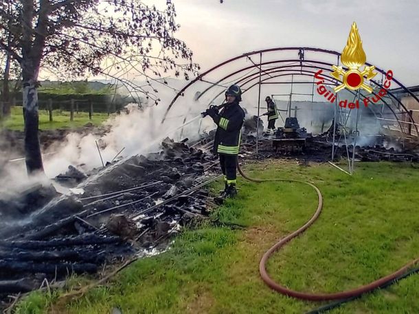 All’arrivo sul posto la squadra ha estinto le fiamme che hanno interessato la struttura con all’interno rotoballe e mezzi agricoli, scongiurando che il fuoco si propagasse ad un’attigua struttura in legno e ferro adibita a stalla. Le cause sono in corso di accertamento e non risultano persone coinvolte.