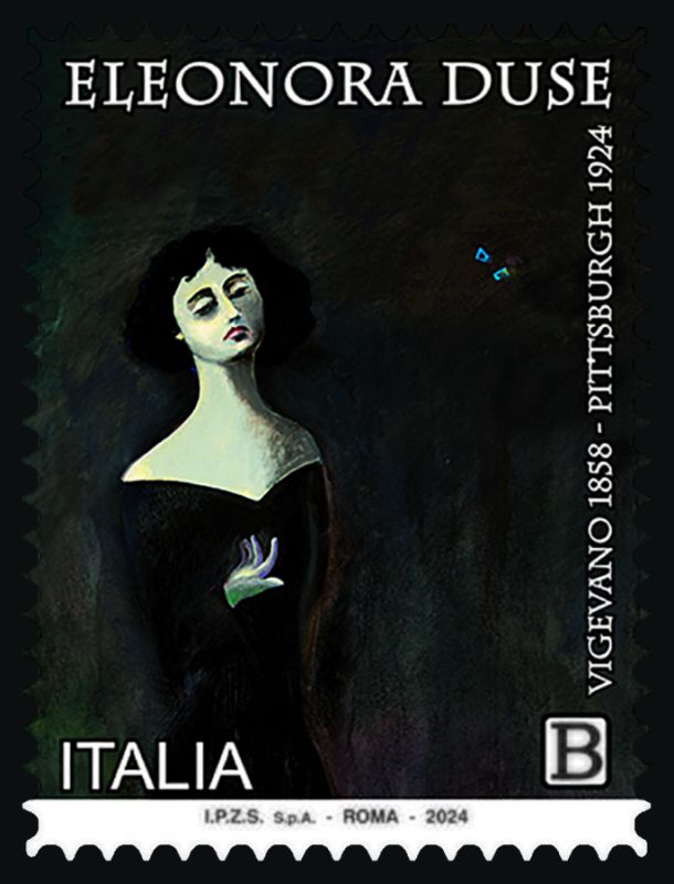 ROMA – Un francobollo commemorativo di Eleonora Duse, nel centenario della sua scomparsa. Poste Italiane comunica che viene emesso oggi, 21 aprile 2024, dal Ministero delle Imprese e del Made in Italy, relativo al valore della tariffa B pari a 1,25 euro. Tiratura: duecentocinquantamilaventi esemplari. Foglio: quarantacinque esemplari.