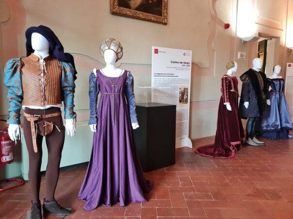 Un’iniziativa frutto della collaborazione tra istituzioni e importanti realtà culturali che hanno contribuito a dare vita ad un vero e proprio viaggio nella Toscana del granduca. Il visitatore viene infatti accolto con una serie di abiti che scandiscono l’ascendenza genealogica di Cosimo, opere sartoriali delle Manifatture Digitali di Prato. Si viene poi immersi nell’atmosfera delle fortezze cosimiane grazie ad una collezione di fotografie appositamente realizzate da Massimo Sestini, infine vi è l’esposizione di preziosi pezzi originali.