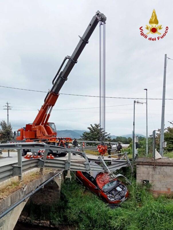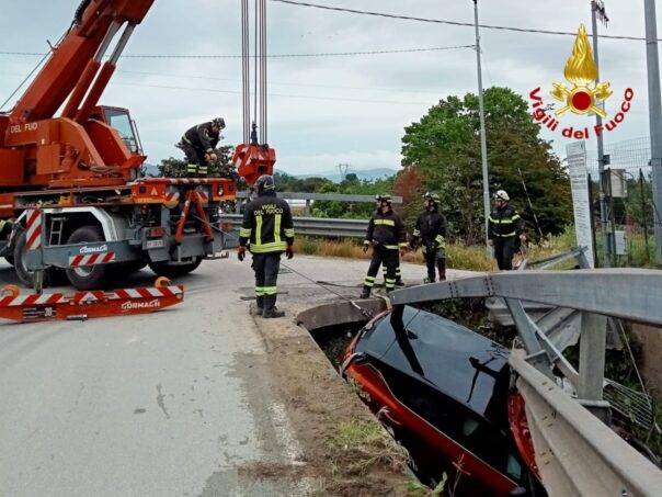 Proprio per la particolarità della posizione dell’auto e le difficoltà a recuperarla è stato necessario l’intervento della squadra dei vigili del fuoco di Montecatini Terme che coadiuvati da un Autogrù proveniente dal Comando di Prato hanno effettuato il recupero. Sul posto era presente personale della Polizia Municipale di Ponte Buggianese che ha assicurato la gestione della viabilità.