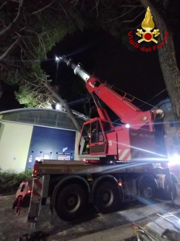 I vigili del fuoco, con l’ausilio di un’autogru e di un’autoscala, hanno provveduto alla rimozione della pianta e alla messa in sicurezza dell’area.