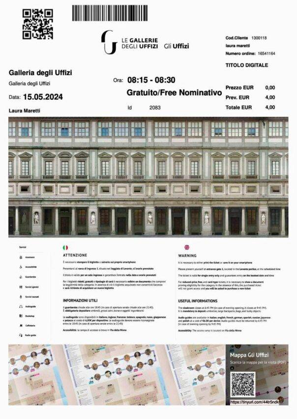 FIRENZE – Stop al ticket di carta, alle Gallerie degli Uffizi inizia l’era del biglietto ‘digitale’. Da oggi, 6 maggio 2024, infatti, gli ingressi acquistati on line sul sito ufficiale del museo o attraverso il call center (055/294883) per Galleria delle Statue e delle Pitture, Palazzo Pitti e Giardino di Boboli, diventano un QR code, che il visitatore riceverà via mail e potrà utilizzare come titolo di accesso esibito in museo direttamente sul telefono. Il codice verrà verificato e convalidato dal personale addetto all’accoglienza con pistole digitali.