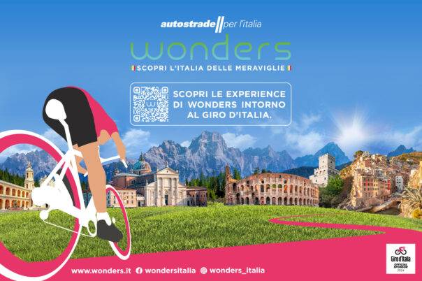 ROMA – Autostrade per l’Italia, per il tredicesimo anno consecutivo è sponsor ufficiale del Giro d’Italia, per promuovere ancora le bellezze del nostro Paese. Il progetto “Wonders. Scopri l’Italia delle meraviglie” è la piattaforma multicanale di Aspi che accompagna il viaggiatore alla scoperta di suggestivi itinerari del nostro Paese, affiancandolo nei diversi momenti del viaggio, dalla pianificazione all’arrivo, grazie alla mappa presente sul portale in cui sono geolocalizzate le oltre 500 esperienze di viaggio individuate con il contributo di Unesco, Touring Club Italiano, Wwf e Slow Food Italia.