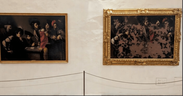 I dipinti al centro dell’esposizione, offerti alla visione del pubblico insieme alle loro copie d’epoca (il cui studio e osservazione sono state fondamentali per consentirne il restauro) portano la firma del pittore caravaggesco del Seicento Bartolomeo Manfredi: si tratta delle grandi tele del Concerto e dei Giocatori di carte.