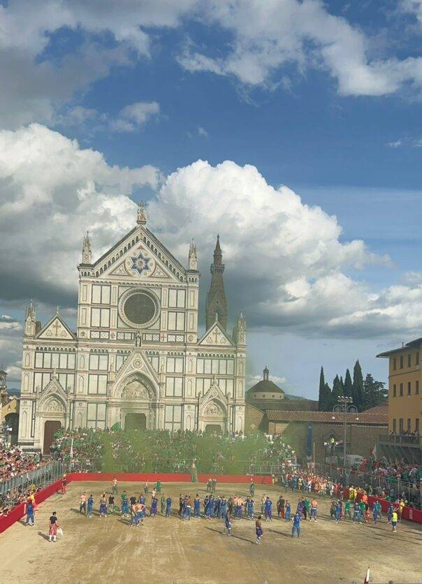 FIRENZE – Lo “zio”, Gabriele Ceccherelli, il mitico Zena, era il magnifico messere della contesa, ma è stato il nipote, Davide Ceccherelli, il vero protagonista della prima semifinale del Calcio Storico 2024, vinta dagli Azzurri per 14 cacce a 5. Ceccherelli junior ha firmato addirittura sei cacce. Applausi dallo zio ma anche da tutta Santa Croce. E complimenti anche da un grande avversario, Daniele Birghillotti, ormai cinquantenne, compagno di squadra dell’altro “magnifico” di oggi, primo giugno 2024, Gianluca Lapi. Ma ancora punto di forza dei Verdi, Birghillotti.