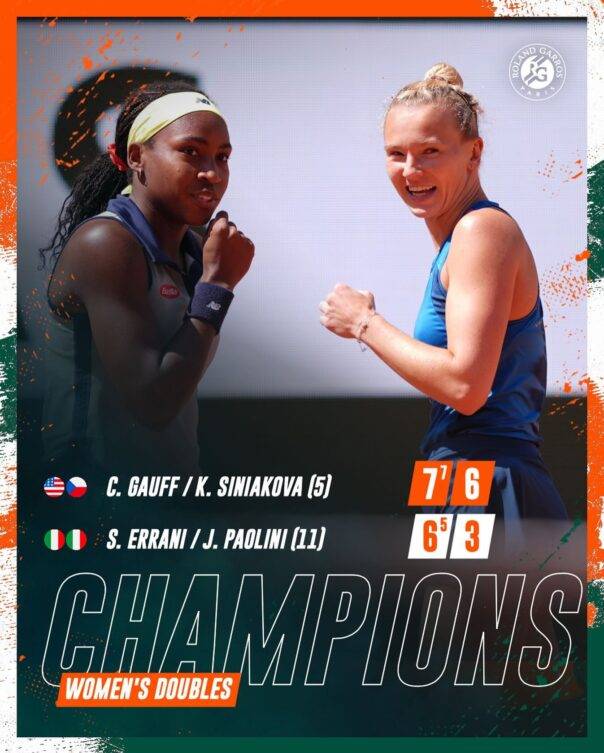 Coco Gauff e Katerina Siniakova si prendono il titolo a Parigi (foto FB Roland Garros)