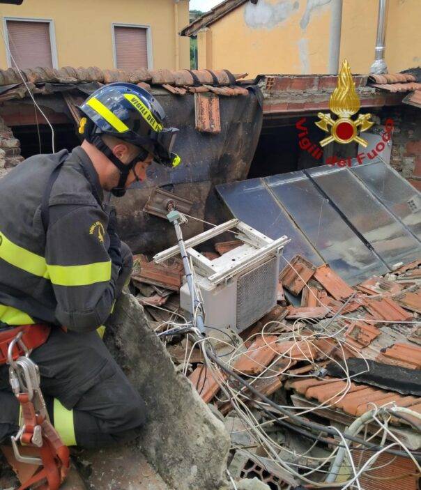 SAN GIOVANNI VALDARNO (AREZZO) – I Vigili del Fuoco del comando sono intervenuti questa mattina, 13 giugno 2024, in via San Lorenzo a San Giovanni Valdarno in un edificio di civile abitazione, composto da due appartamenti, dov’è crollato il tetto.