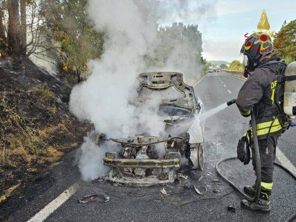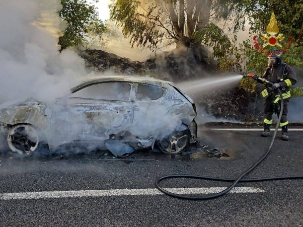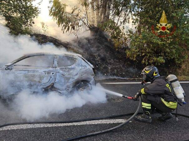 All’arrivo sul posto della squadra dei vigili del fuoco i due occupanti erano fuori dal mezzo incolumi, ma l’auto era già avvolta dalle fiamme, quindi ha provveduto allo spegnimento dell’incendio che rischiava di propagarsi anche alla vegetazione ai bordi della carreggiata, in parte già incendiata.