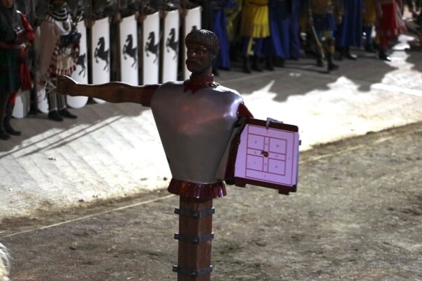 AREZZO – Il Quartiere di Porta Santo Spirito vince la 145esima edizione della Giostra del Saracino di Arezzo con due cinque di Gianmaria Scortecci e il quattro di Elia Cicerchia che regalano alla Colombina la vittoria numero 40 che vale la testa solitaria dell’Albo d’Oro. E’ Francesco Rossi ad aprire la Piazza per Porta del Foro che marca quattro punti. Poi tocca a Lorenzo Vanneschi per Porta Crucifera che va sicuro contro il Buratto, cerca il centro e lo colpisce: 5.