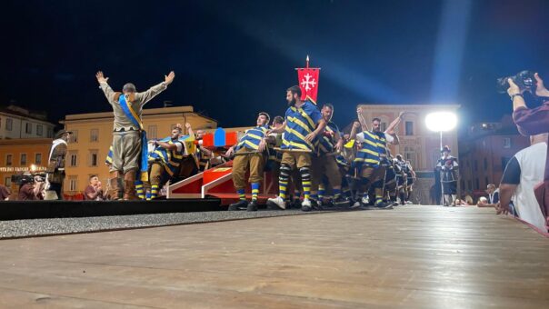 PISA – Nonostante il caldo e l’afa, erano in migliaia sui lungarni addobbati nel tardo pomeriggio di ieri, 29 giugno 2024, per assistere al corteo storico con circa 750 figuranti (tra loro anche il comico di Striscia la notizia, Cristiano Militello) e poi la “battaglia” durata ore sul Ponte di Mezzo, nel centro storico di Pisa. A notte fonda è la Parte di Mezzogiorno (che raggruppa i quartieri a sud dell’Arno) a imporsi alla “bella” vincendo 4-3 il Gioco del Ponte, la principale manifestazione storica cittadina, conquistando una vittoria che mancava dal 2018.