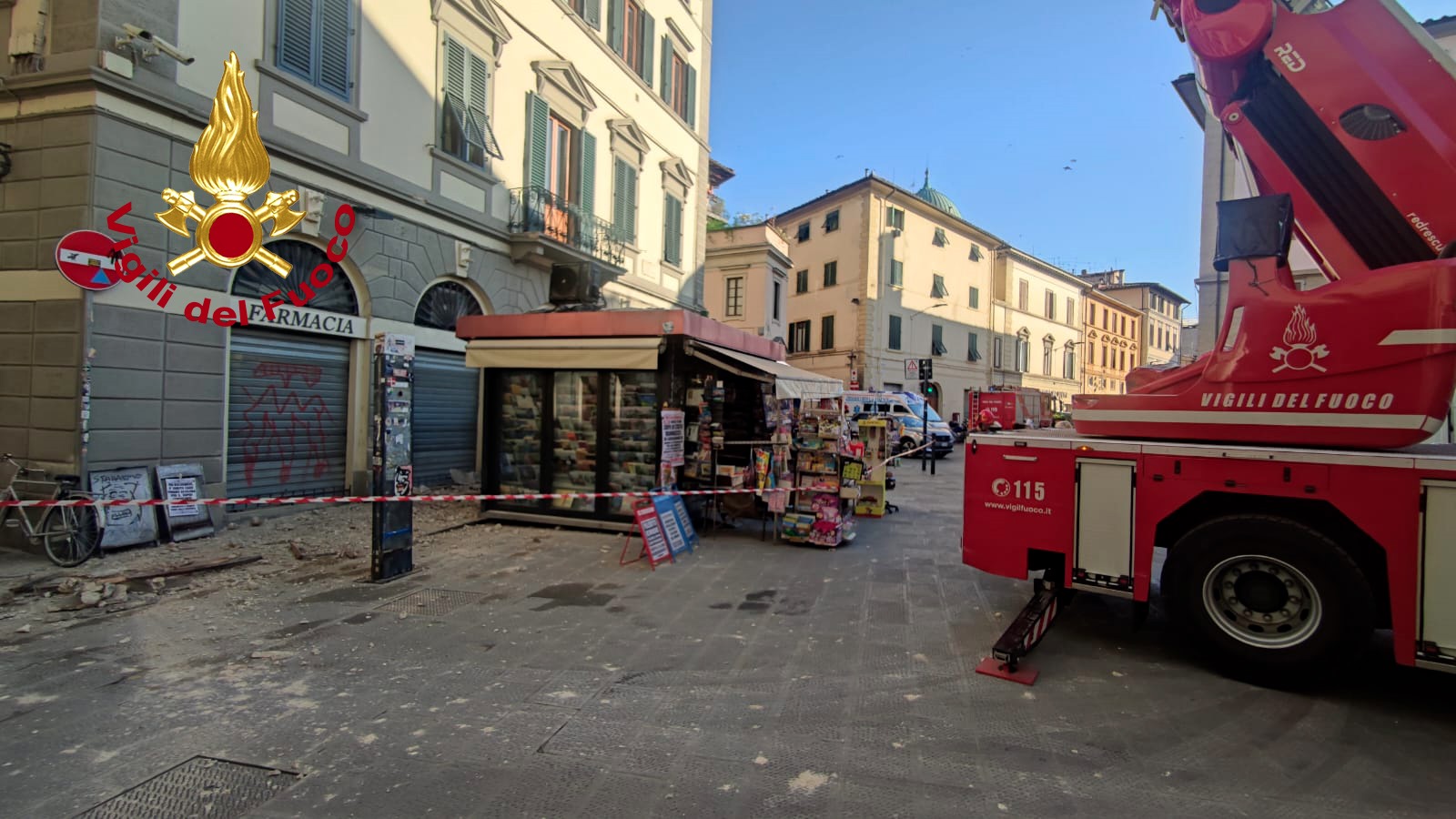 Nessuna persona, a quanto pare, sarebbe rimasta coinvolta. I detriti avrebbero sfiorato un’edicola e l’ingresso di una farmacia. Per precauzione, i vigili del fuoco hanno chiuso il tratto finale di via Pietrapiana che si affaccia su piazza Sant’Ambrogio.