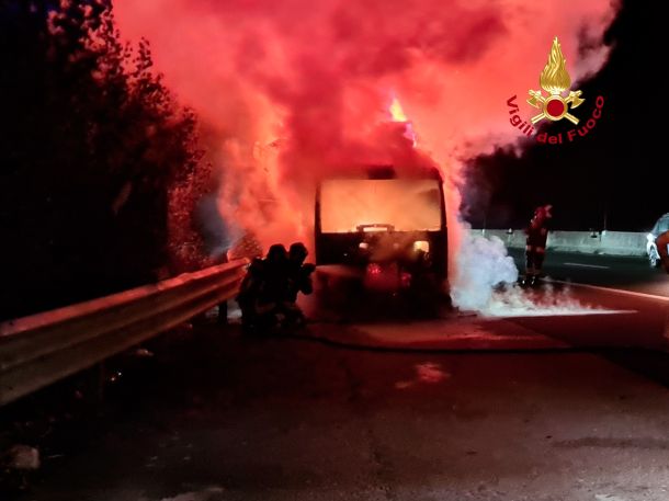 Sul posto inviate due squadre e un’autobotte, che hanno provveduto ad effettuare l’estinzione dell’incendio che ha distrutto l’automezzo e il carico di tessuti trasportati.