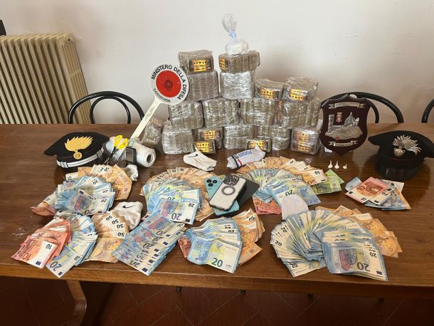 contanti, oltre 14 kg di “hashish” e quasi un etto di “cocaina”.