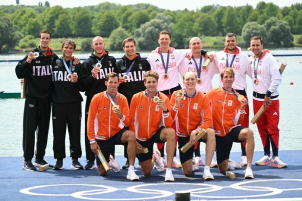 PARIGI – Un altro argento per l’Italia dal canottaggio con il 4 di coppia. Il bilancio azzurro è quindi salito a quota 12 medaglie: tre ori, cinque argenti e quattro bronzi. Allo stadio nautico di Vaires-sur-Marne, l’equipaggio italiano – formato da Luca Chiumento, Luca Rambaldi, Andrea Panizza e Giacomo Gentili – ha chiuso la finale olimpica con il tempo di 5’44”40, battuto solo dall’Olanda (5’42”00) e davanti, in un finale da ricordare, alla Polonia, bronzo con 5’44”59.