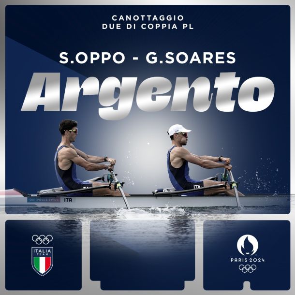PARIGI (FRANCIA) – Stefano Oppo e Gabriel Soares conquistano uno splendido argento nel due di coppia pesi leggeri, prova del canottaggio che vedeva l’equipaggio azzurro tra i favoriti. Con un finale in crescendo superano al fotofinish i greci Papakonstantinou e Gkaidatsis, bronzo.