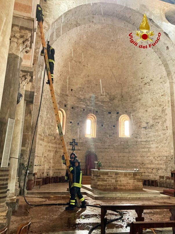 A tutela della privata e pubblica incolumità è stato interdetto l’accesso al luogo di culto fino a più approfondite verifiche sulla staticità del trave interessato dall’incendio. Presenti sul posto l’Arcivescovo e personale della protezione civile.