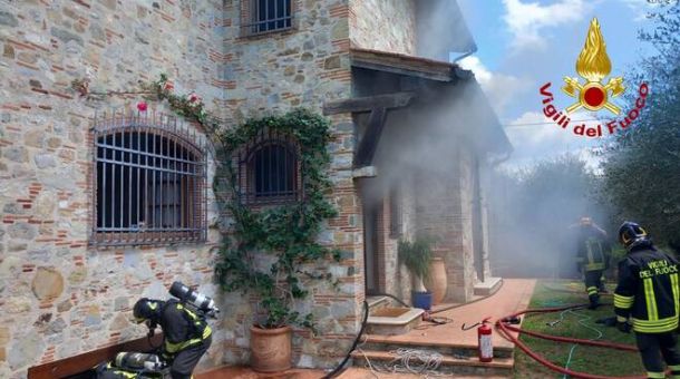 Massarosa, incendio villetta: due costole incrinate per il vigile del fuoco investito dall’esplosione di batterie